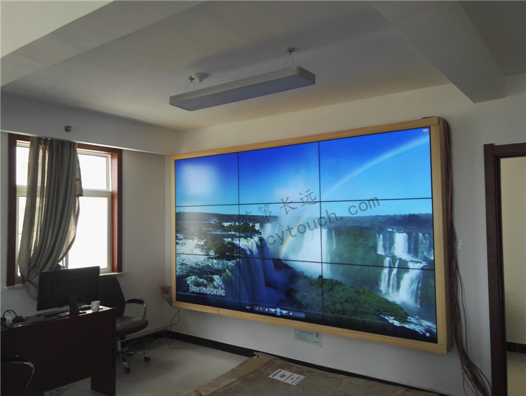 本次靖邊縣政府采購中心采用我公司3*3塊46寸液晶拼接,亮度為500cd/㎡,拼縫3.5mm,壽命長達6萬小時以上。本方案設計為壁掛式拼接,定制五金支架及不銹鋼包邊,堅固牢靠不變形,整體結構緊湊大方,美觀大氣,渾然一體,顯示效果獲得了用戶的一致認可。