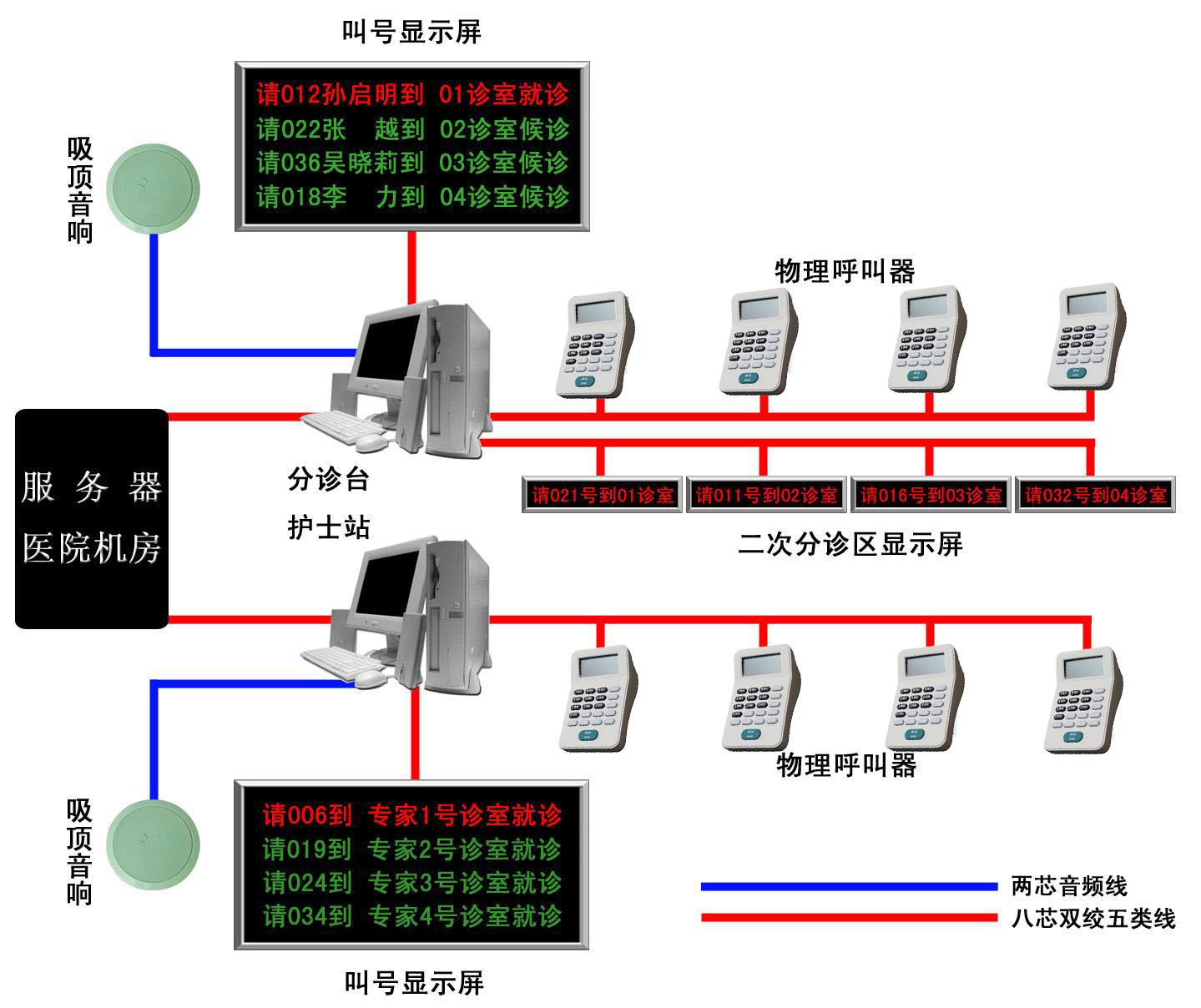 當今各行各業的信息化、智能化建設越來越普及,整個社會對各個行業的辦事效率的要求越來越高,尤其是服務性行業,既要滿足被服務人的服務需求,又要提高服務質量,提高服務效率,例如醫院門診等,現在的病人不僅僅要求醫院滿足業務上的需要,還要求醫院盡量提高就醫的環境、服務的質量及減少病人的等待時間,而醫院本身由于競爭的需要,也要求提高本身的辦事效率,提高本身的服務形象,而這些辦事窗口及門診的排隊現象在所難免,在過去,一旦到就診高峰期,病人為了早一點看上病,病人或病人的家屬不停在就診室和病人之間走來走去,這樣把本來就紛亂的醫院環境變得更加紛亂,不僅影響了醫生的工作,給醫院的導診護士增加了工作量,也給病人造成了不必要的麻煩。
